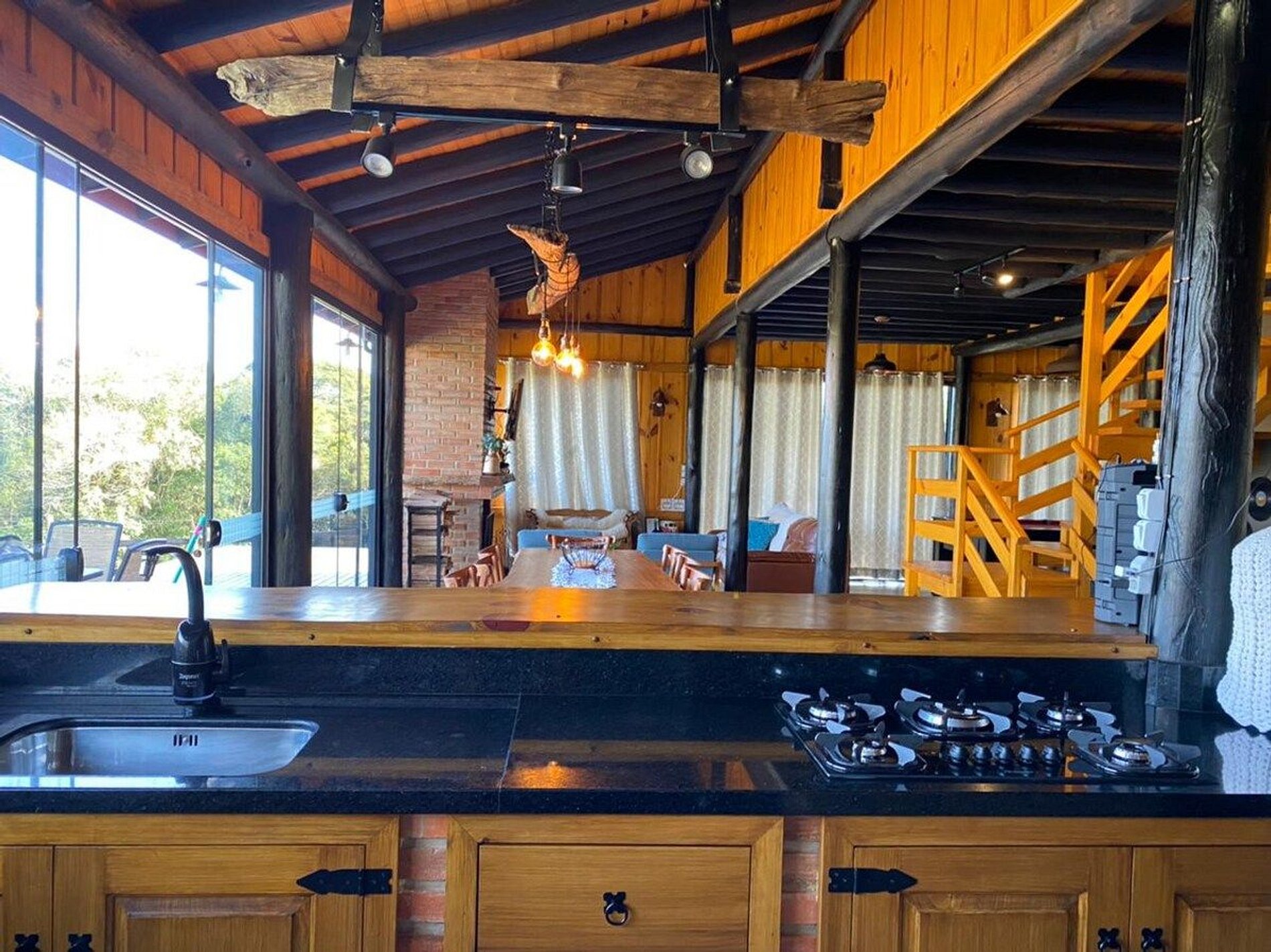 Sala com lareira, tv (SKY, Netflix, YouTube), mesa de sinuca, mesa de jantar e cozinha completa!