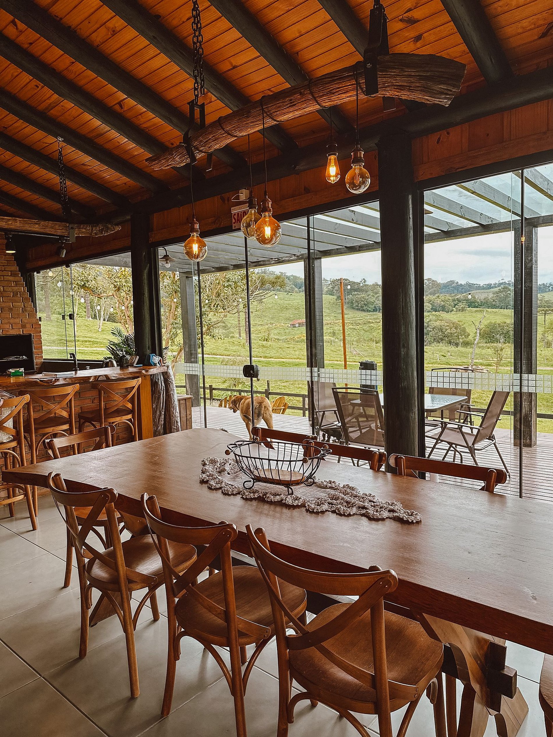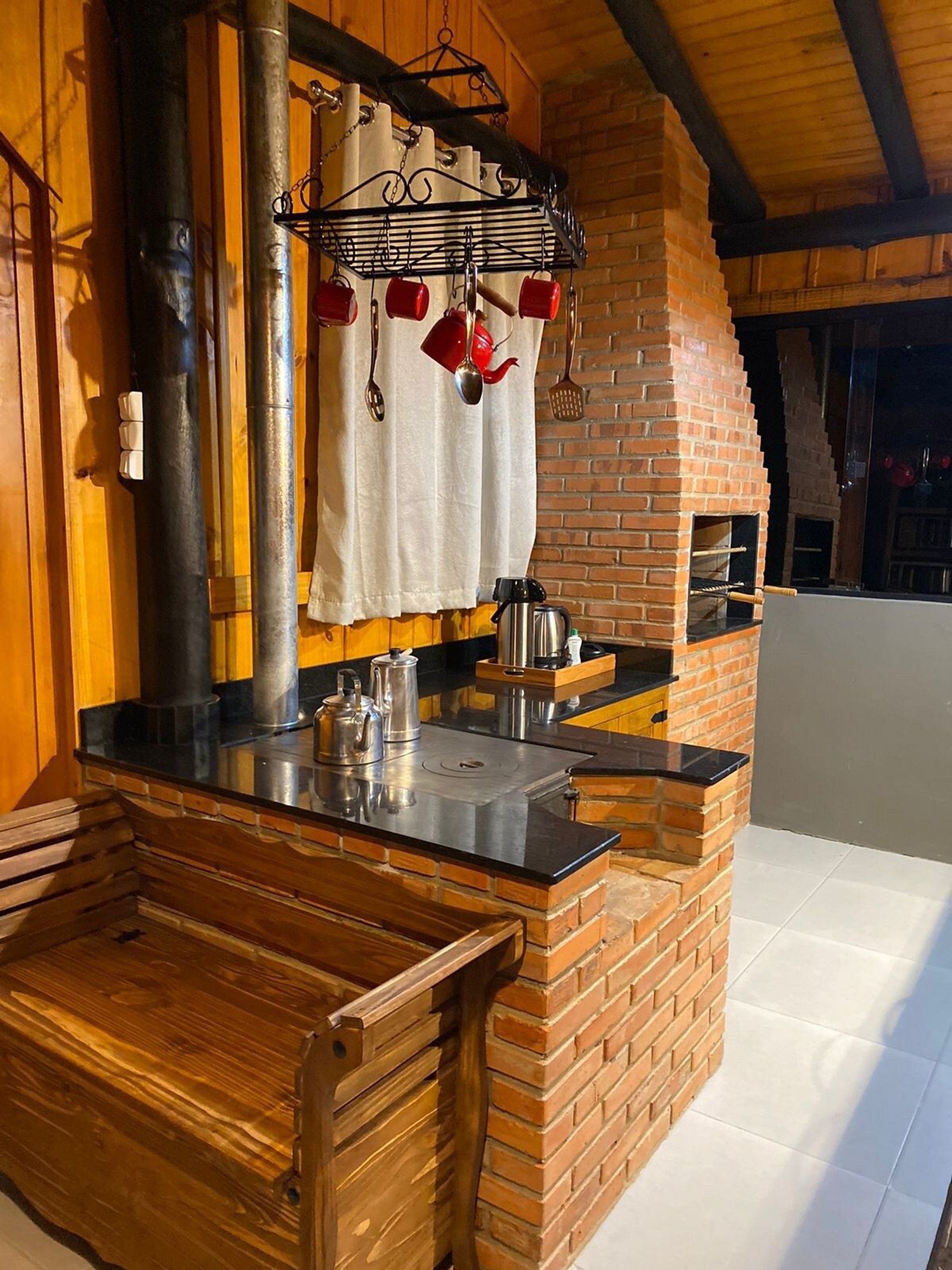 O Celeiro possui cozinha completa com churrasqueira, fogão a lenha, fogão a gás, geladeira, cervejeira, microondas, forno elétrico, sanduicheira, aparelho para fondue, cesta de piquenique, utensílios de cozinha, churrasco e uma mesa de sinuca!
