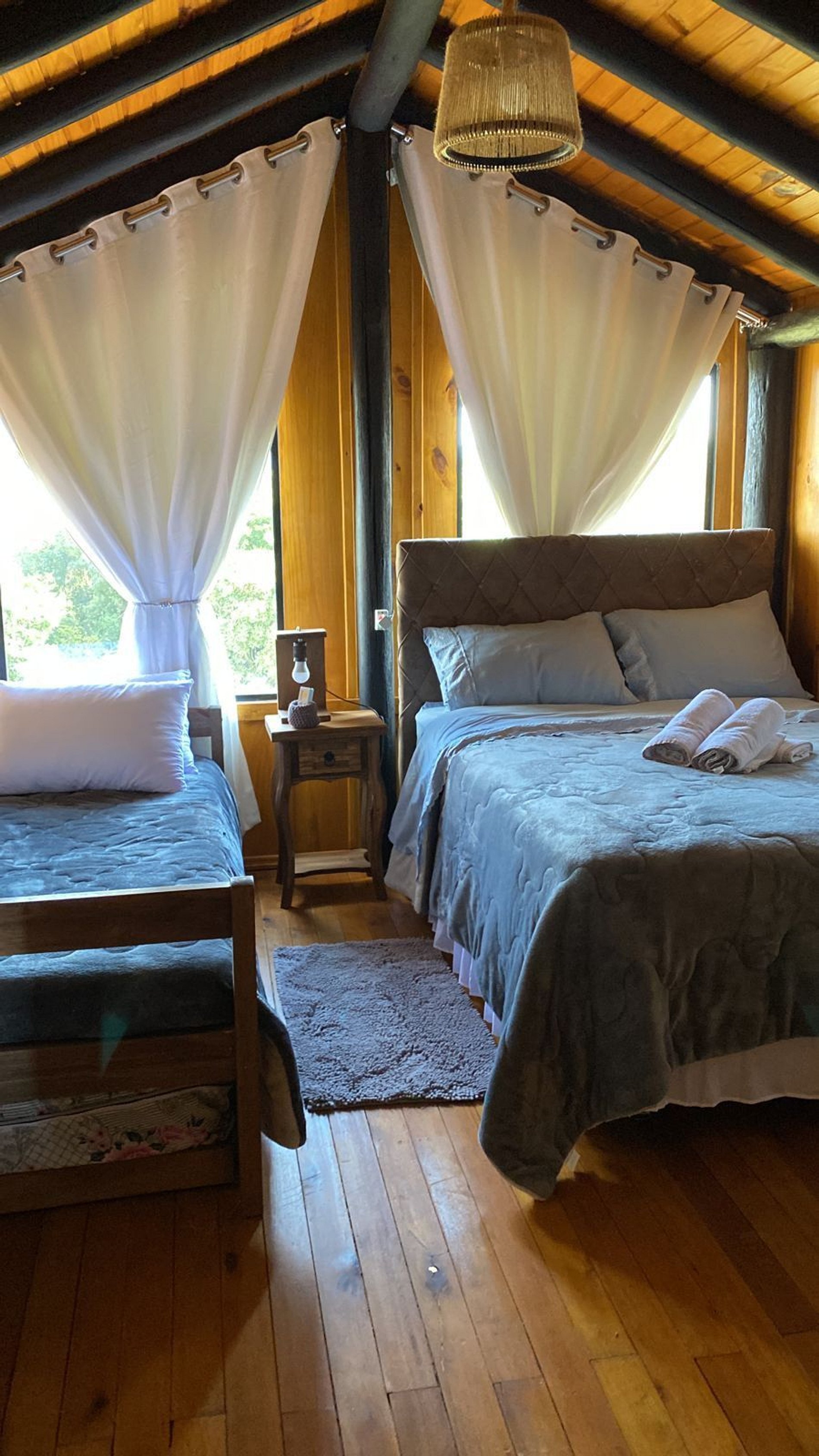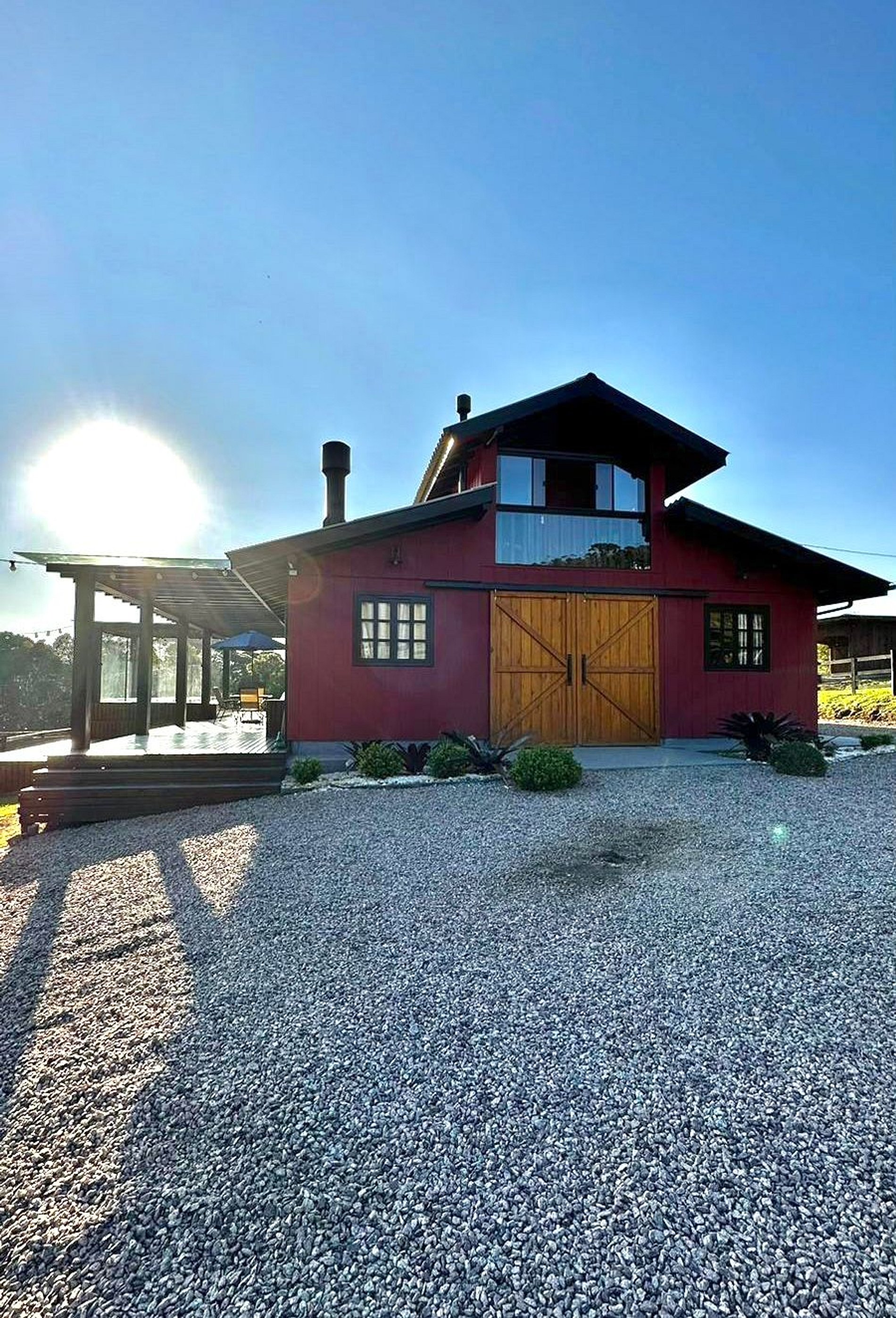 Já para grupos de amigos e famílias, temos 02 opções: o Celeiro Recanto com jacuzzi aquecida, que acomoda até 09 pessoas, e o Chalé Rústico para Grupos de até 16 pessoas, com Jacuzzi aquecida, o qual inclui um galpão rústico com sala de jogos, música, fogo de chão, e uma casa de madeira azul, utilizada como dormitórios.