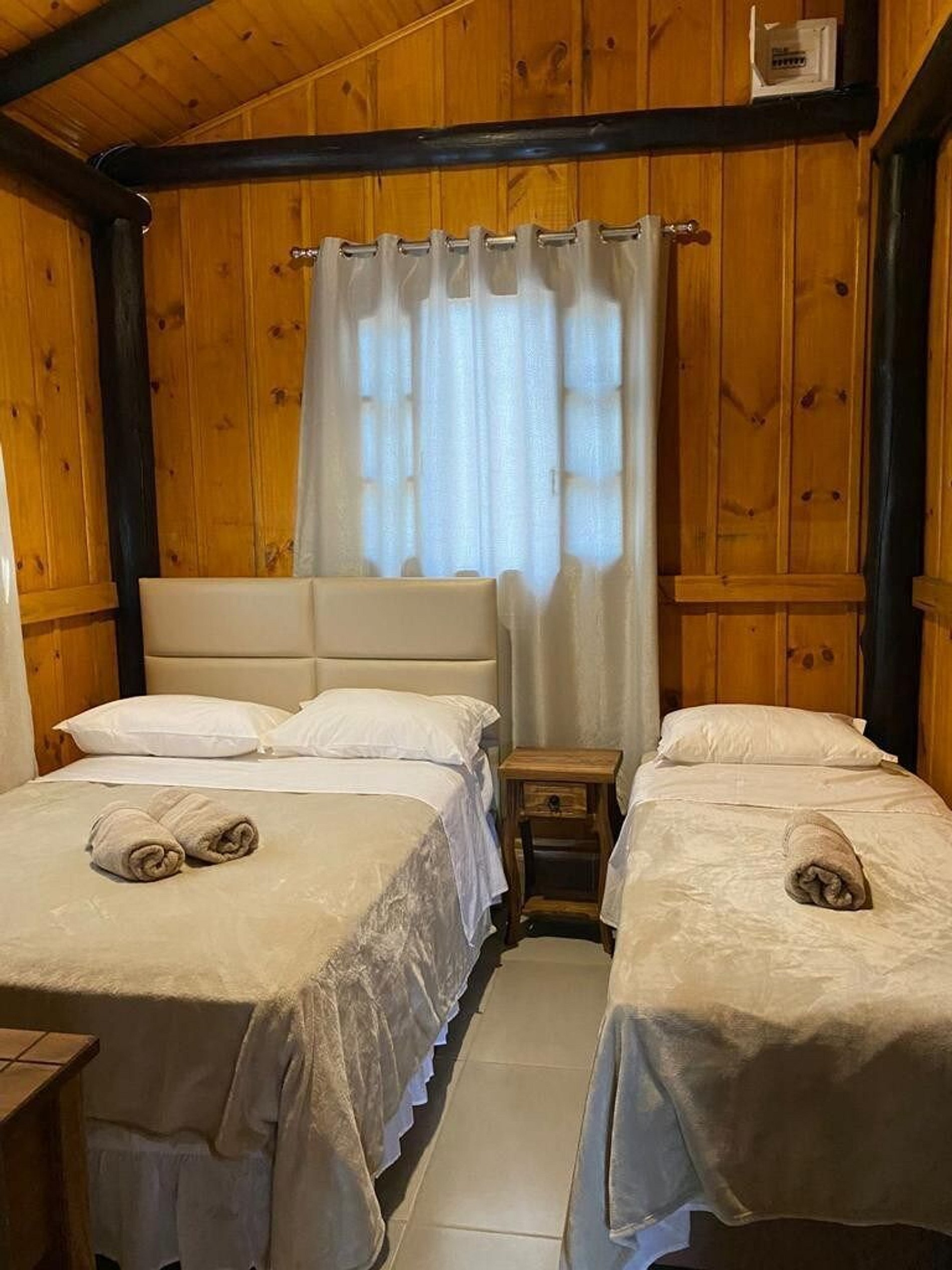 Na parte externa temos um fogo de chão cheio de estilo para curtir entre amigos! Possui 3 quartos, com ar condicionado, sendo 01 suíte, que acomodam até 09 pessoas confortavelmente! Fornecemos roupas de cama. Não fornecemos toalhas de banho.
