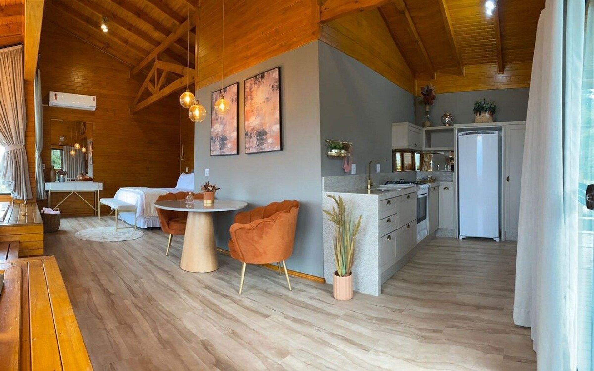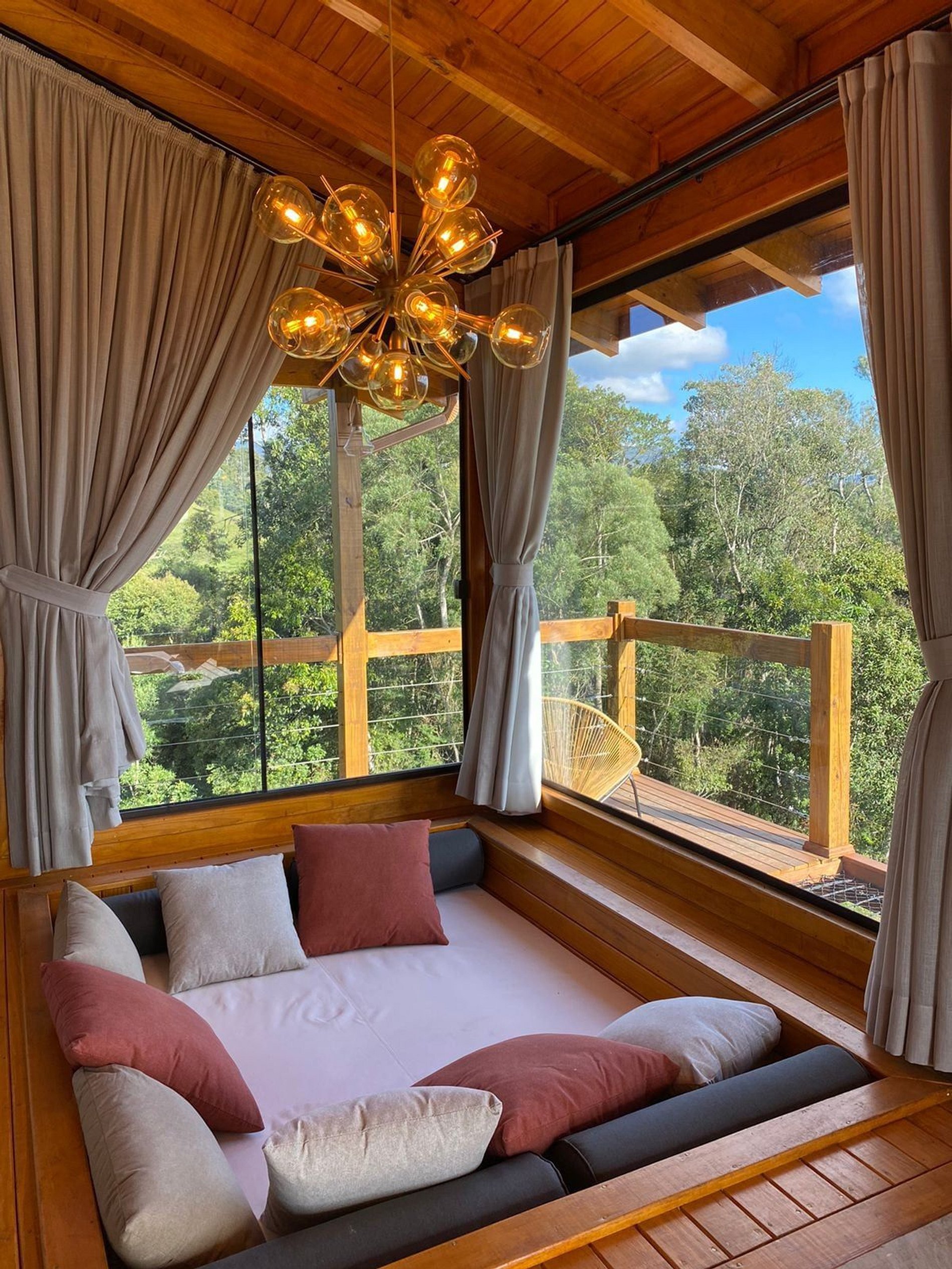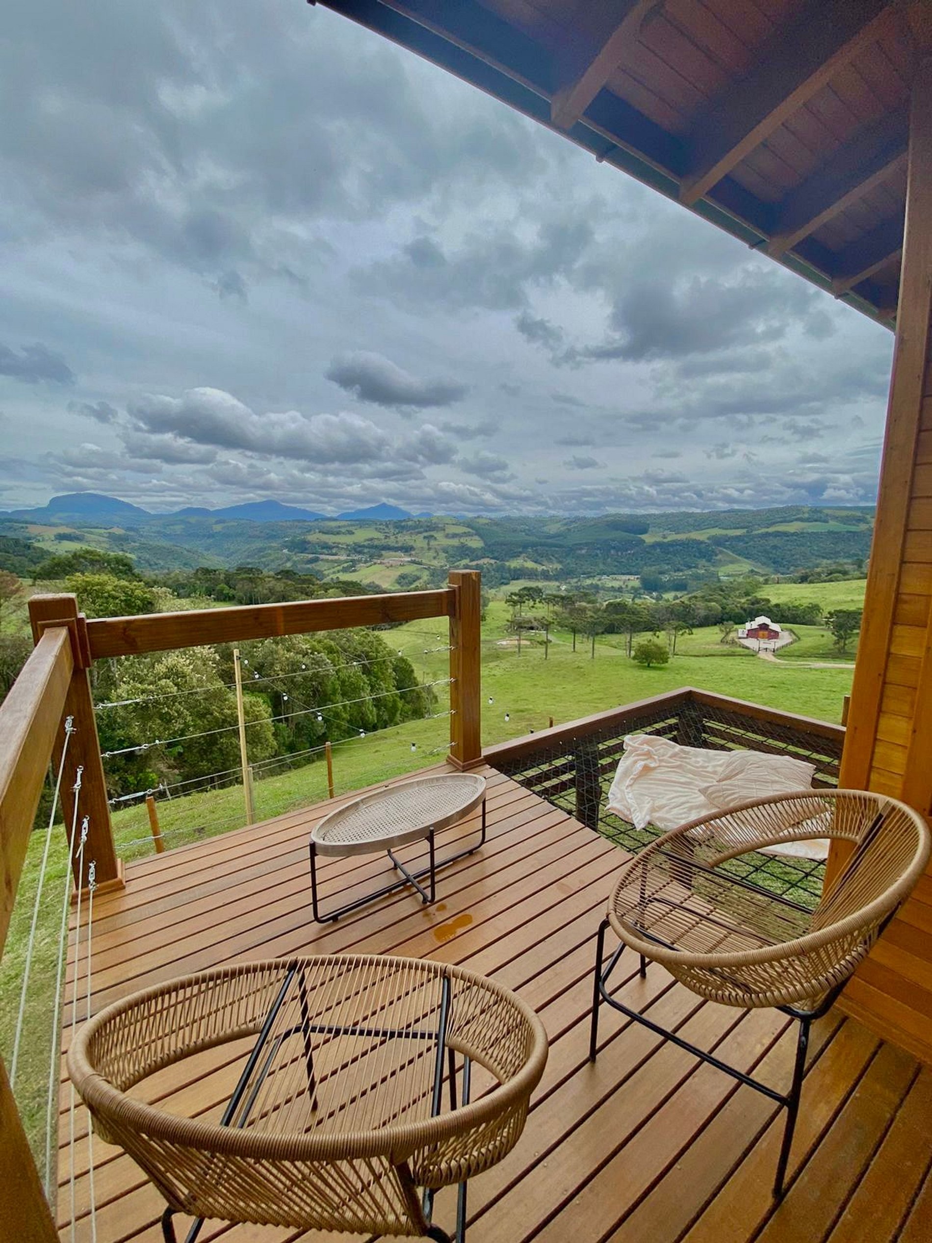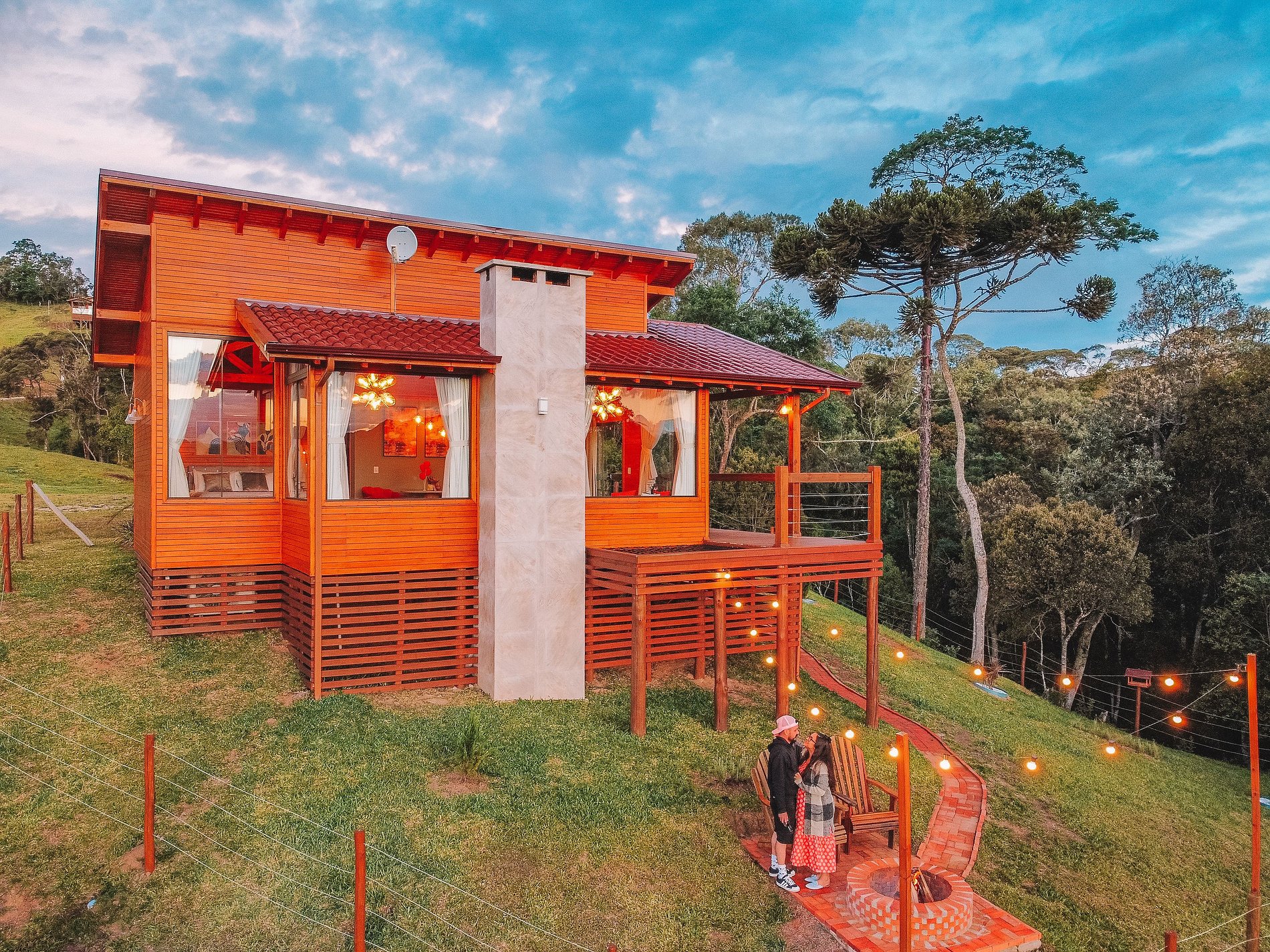 O Chalé Mirante é uma cabana romântica anexa ao @sitiorecantoazul, localizado em Alfredo Wagner - SC, na região de Santa Bárbara. O chalé é ideal para casais! Não costumamos aceitar crianças e pets por segurança, visto que o chalé possui rede horizontal. Porém, isso pode ser combinado previamente. Não há repartição entre os ambientes (sala, quarto e cozinha). Fornecemos uma box de café da manhã, todos os dias entre as 8:00 e 9:00, entregue no chalé.