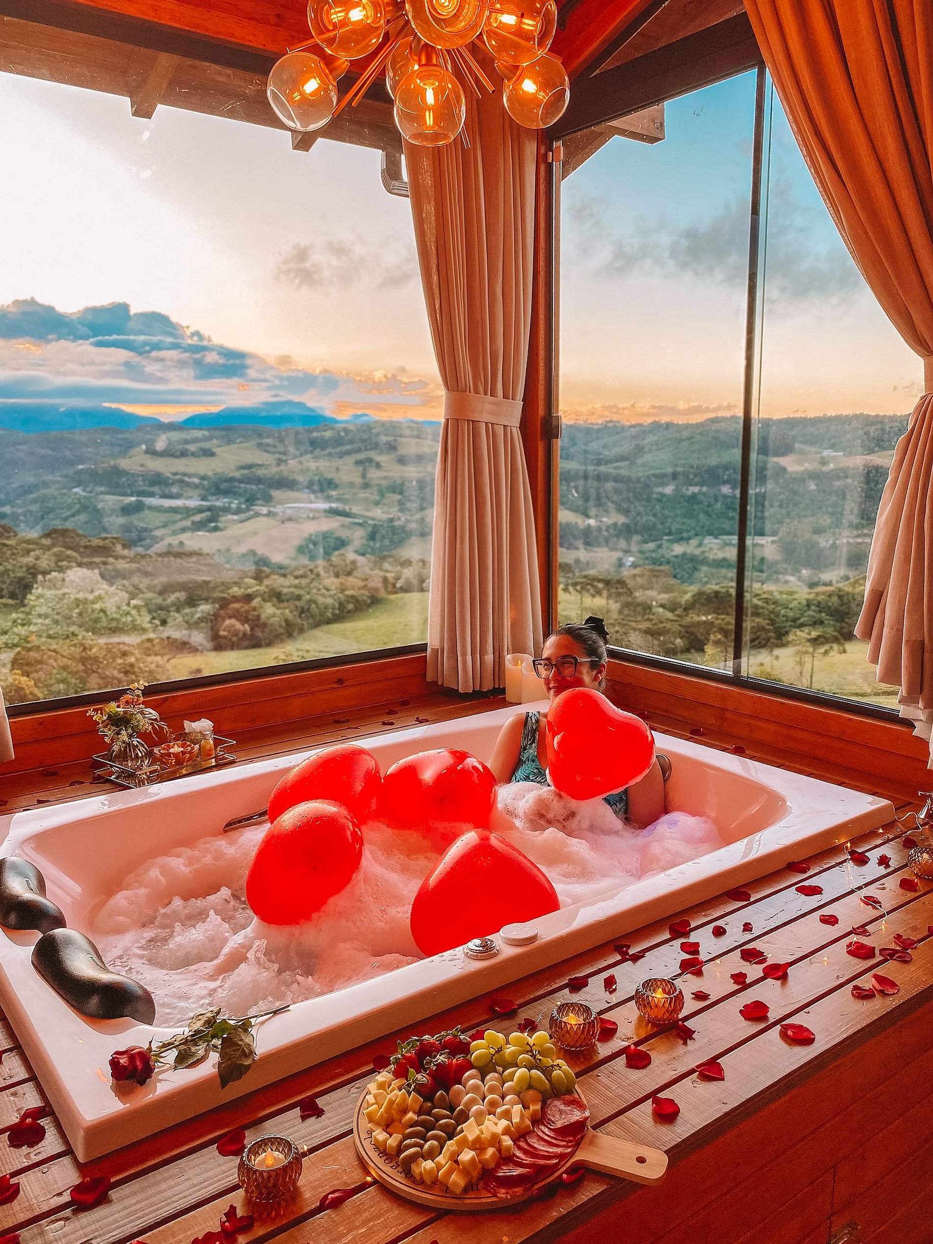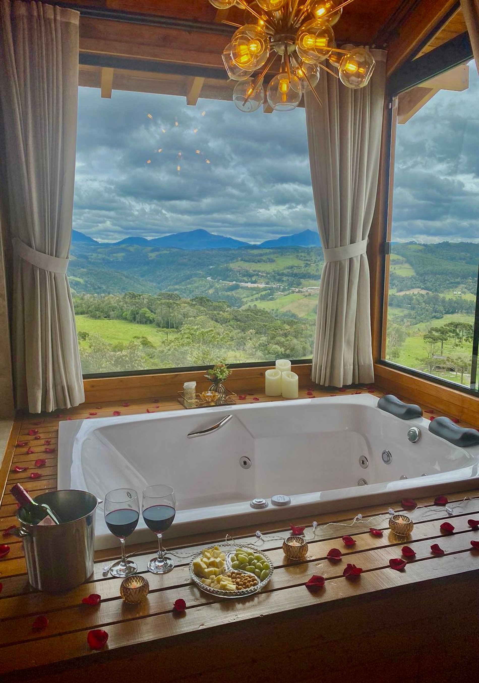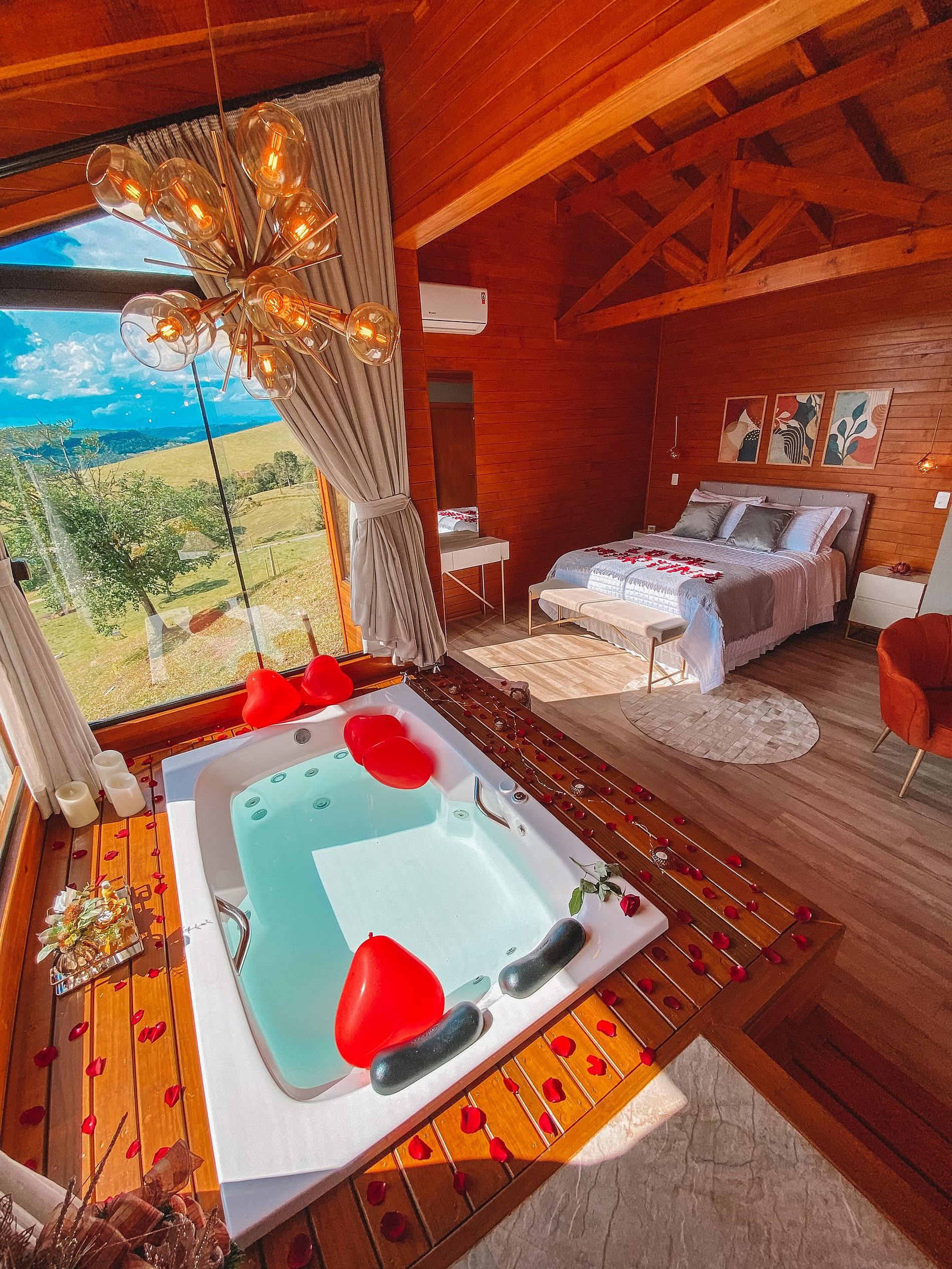 Como opções para momentos românticos, temos 04 chalés incríveis para casal: Chalé Ágata, Chalé Doce Recanto, Chalé Ágata e Domo Estelar, todos com banheira de hidromassagem, cama queen, cozinha, TV com netflix e youtube, Wi-fi, ar condicionado e vistas maravilhosas para as montanhas.