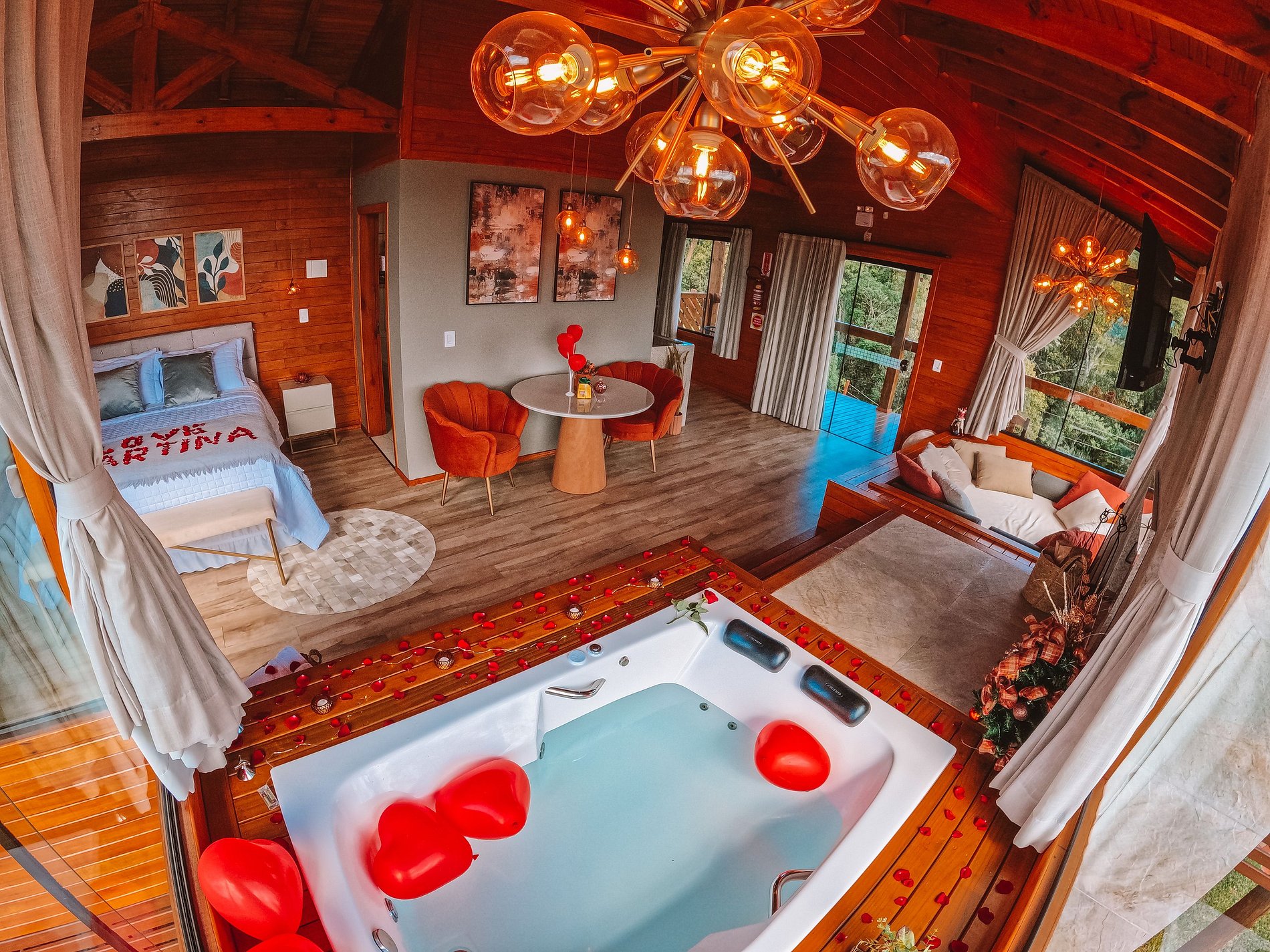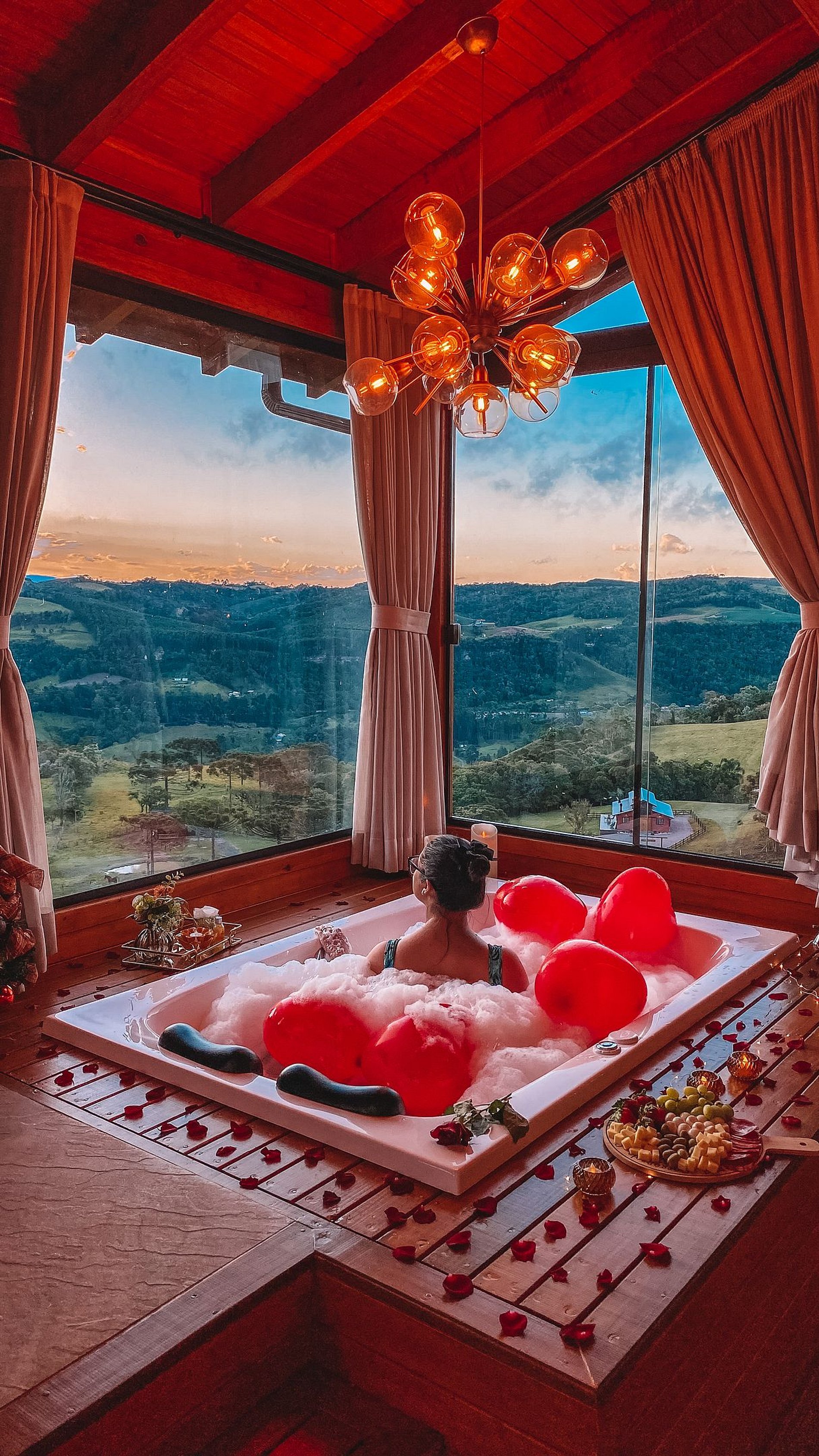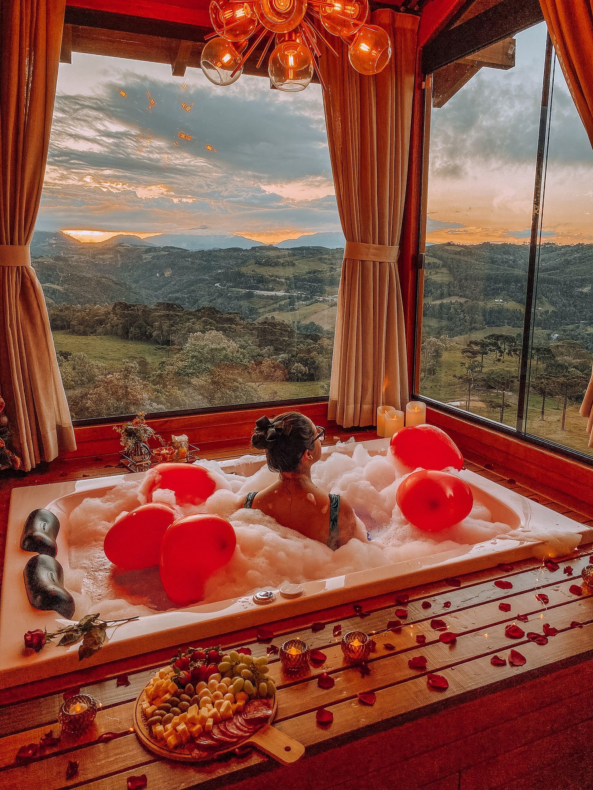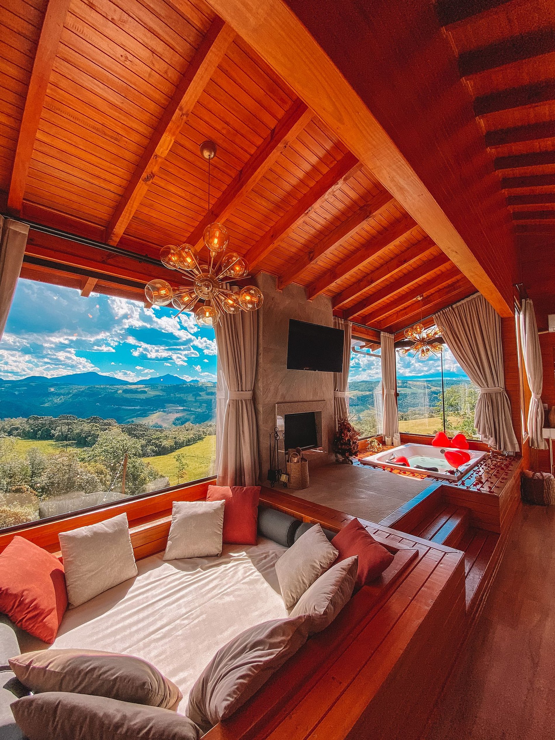 Como opções para momentos românticos, temos 04 chalés incríveis para casal: Chalé Ágata, Chalé Doce Recanto, Chalé Ágata e Domo Estelar, todos com banheira de hidromassagem, cama queen, cozinha, TV com netflix e youtube, Wi-fi, ar condicionado e vistas maravilhosas para as montanhas.