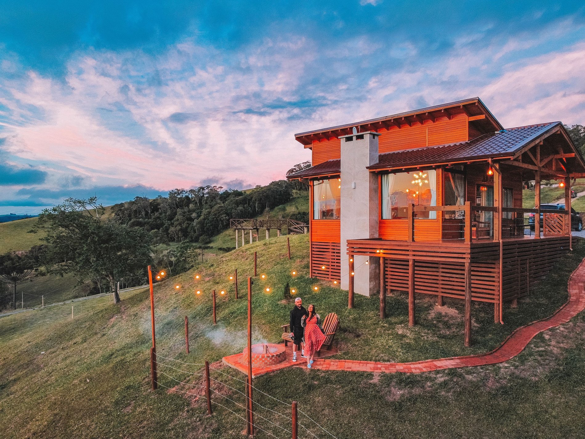 Já para grupos de amigos e famílias, temos 02 opções: o Celeiro Recanto com jacuzzi aquecida, que acomoda até 09 pessoas, e o Chalé Rústico para Grupos de até 16 pessoas, com Jacuzzi aquecida, o qual inclui um galpão rústico com sala de jogos, música, fogo de chão, e uma casa de madeira azul, utilizada como dormitórios.